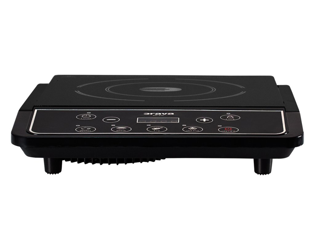 Vyskúšajte si varenie pomocou indukčnej technológie vďaka prenosnému variču ORAVA VP-20i a varte moderne doma, na internáte, na chate, proste všade, kde oceníte úsporu energie, času a naozaj jednoduchú údržbu. Varnú zónu tvorí elegantné čierne sklo s veľmi ľahkou údržbou. Jednoduché a prehľadné ovládanie umožňuje 8 úrovni nastavenia teploty od 60°C do 270°C a 4 prepínacie tlačidlá varných funkcii WATER (voda), STEW (dusenie), FRY (smaženie) a HOT POT (varenie). Povrch variča tvorí keramická doska odolná voči vysokým teplotám a varič vás spoľahlivo informuje prostredníctvom veľkého LED displeja a svetelných kontroliek. Azda najväčšou výhodou indukčných varičov je, že sklokeramická indukčná varná doska ostáva studená na dotyk, pretože teplo sa indukciou vytvára priamo v nádobe. Vhodný riad pre ohrievanie na indukčnom variči sú hrnce a panvice s magnetickým dnom, rovnako tak ako oceľové hrnce so železným dnom, odlievané železo, glazúrované panvice, panvice s rovným dnom a hrnce s priemerom 12 až 22 cm s magnetickým dnom. Varič disponuje funkciou zablokovania ovládacích prvkov (Lock) - Detský zámok a možnosťou nastavenia vypínacieho časovača.