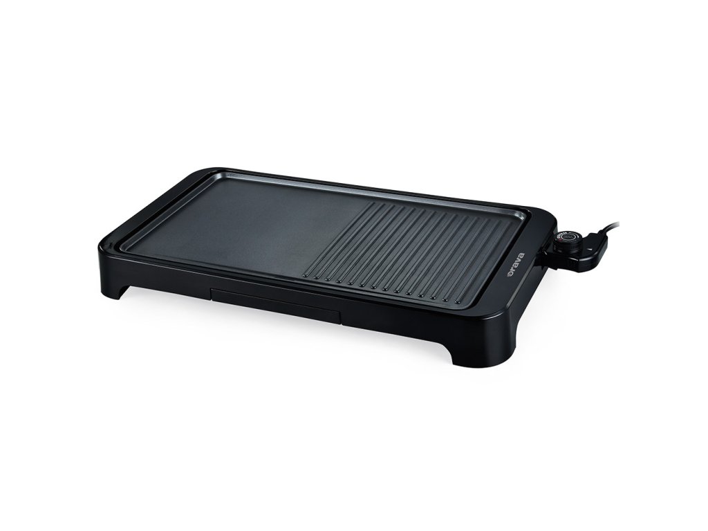 Elektrický gril Orava Grillchef-5 je skvelým pomocníkom na grilovačku pre tých, ktorí nechcú dlho čakať na grilované dobroty a radi si užívajú na grilovačke pohodu. Na rozdiel od iných typov grilov, z elektrického grilu sa zbytočne nedymí, keďže naň nepotrebujete žiadne extra palivo. Stačí gril zapojiť do elektrickej siete, nastaviť požadovanú teplotu grilovania a naložiť na gril všetko, čo vám z grilu chutí. Dostatok mäsa, klobások, syra, ale aj cuketa, baklažán či iná zelenina sa zmestia na veľkorysú grilovaciu plochu s rozmermi až 50 x 27 cm, aby vaši hostia nemuseli dlho čakať na svoju porciu grilovaných delikates. Grilovacia plocha je rozdelená na dve časti - hladkú a vrúbkovanú -, čo vám umožní naraz pripravovať napríklad grilované ryby, ale aj vajíčka do hamburgerov na hladkej ploche a poctivé kusy steakov na vrúbkovanej časti. Vhodná teplota na grilovanie sa ľahko nastavuje otočným gombíkom až do teploty 220 °C na okamžité rozpálenie grilu. V závislosti od nastavenej teploty sa grilované delikatesy môžu pripravovať pomaly a dôkladne na miernej teplote, dajú sa rýchlo upiecť tak, aby ostali šťavnaté, a pri nastavení teploty do 60 °C môžete nechať ugrilované kúsky na grile ohrievať sa, aby nevychladli, kým si z nich hostia zase naberú.