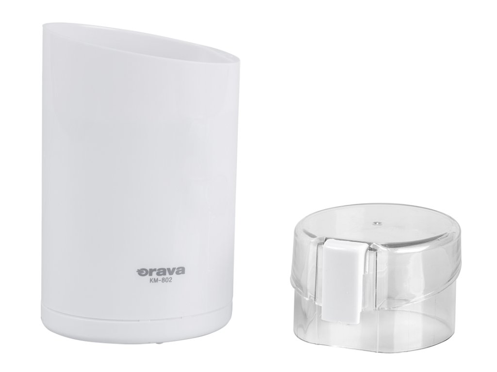Ak máte doma kávovar bez vstavaného mlynčeka a radi by ste si namleli vždy čerstvú a voňavú kávu, potom je najjednoduchším riešením použiť super praktický a cenovo výhodný mlynček na kávu Orava KM 802, ktorý vám ponúkne rovnomerné namletie kávy v priebehu niekoľkých sekúnd. Tento elegantný biely mlynček na kávu má nôž z kvalitnej nehrdzavejúcej ocele a výkonný 130 W motor, ktorým dokáže pomlieť zrnká kávy presne podľa vašich predstáv. Mimoriadne účelný mlynček na kávu Orava KM 802 dokáže obsiahnuť 50 gramov kávových zŕn na jedno mletie (cca 6 šálok kávy), vďaka čomu budete mať svoju kávovú zmes vopred pripravenú aj na ďalšie porcie. Hrúbka namletej kávy záleží od dĺžky mletia, ktorú si regulujete stlačením tlačidla. Pre bezpečnú prevádzku má zabudovanú bezpečnostná poistku proti spusteniu mlynčeka bez krytu.