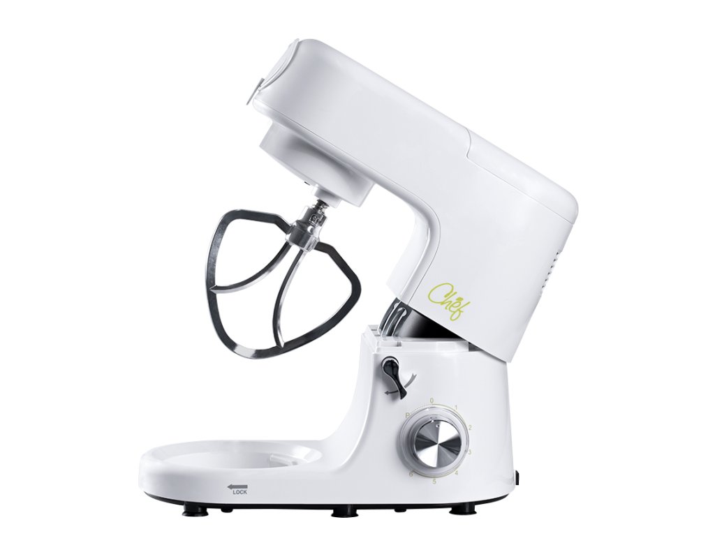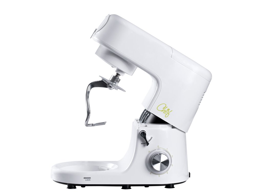 Kuchynský robot Chef1 je úžasným pomocníkom, ktorý si ťažkú prácu pri varení a pečení „odmaká“ za vás. Vďaka nemu Vám v kuchyni skončia časy presilených zápästí a driny pri varení, pečení aj mixovaní. V štýlovom bielom prevedení s akcentom na čiernu a antikor pôsobí ako neprehliadnuteľný profesionál, ktorý si svoje miesto nájde v každej kuchyni bez ohľadu na zariaďovací štýl. Aj tie najťažšie úlohy na kuchynskej linke zvládne vďaka 1 400 W motoru, 6 rýchlostiam a režimu Pulse. Dokáže toho neúrekom: v 7 l antikorovej mise vymiesi, vyhnieti i vyšľahá dokonalé cesto alebo krémy do koláčov. Na kovovom mlynčeku na mäso ľahko pomelie mäso na poctivý domáci hamburger. Poľahky si na ňom pripravíte aj domáce klobásky a jaternice. Na strúhadle s 3 rôznymi veľkosťami môžete krájať a strúhať zeleninu a ovocie do šalátov alebo poctivú nálož syra. 1,5 l sklenená misa na mixovanie je ako stvorená prípravu polievok, omáčok aj zdravím nabitých smoothies. S jeho pomocou hravo vyčarujete aj chutné cukrovinky alebo poctivé domáce cestoviny.