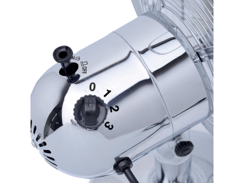 Ponúka možnosť nastavenia troch rýchlostí a je vybavený vrtuľou s priemerom 25 cm, ktorá je chránená bezpečnostnou mriežkou, aby sa predišlo možným poraneniam.